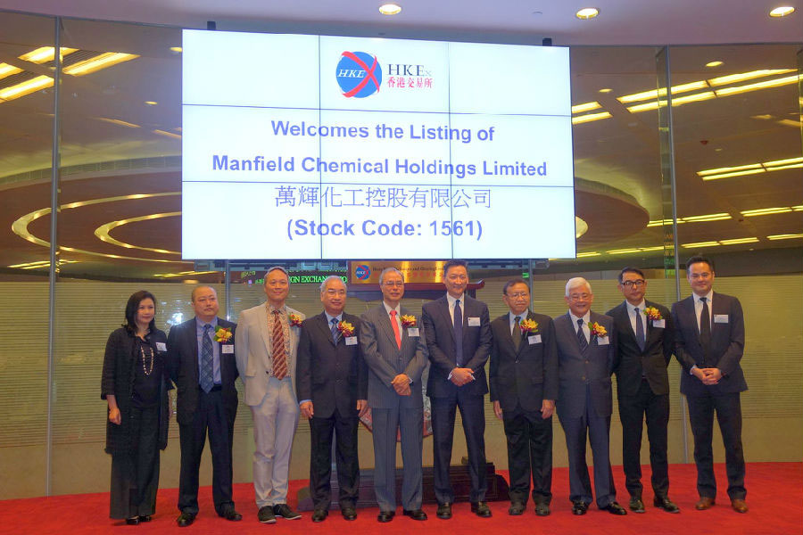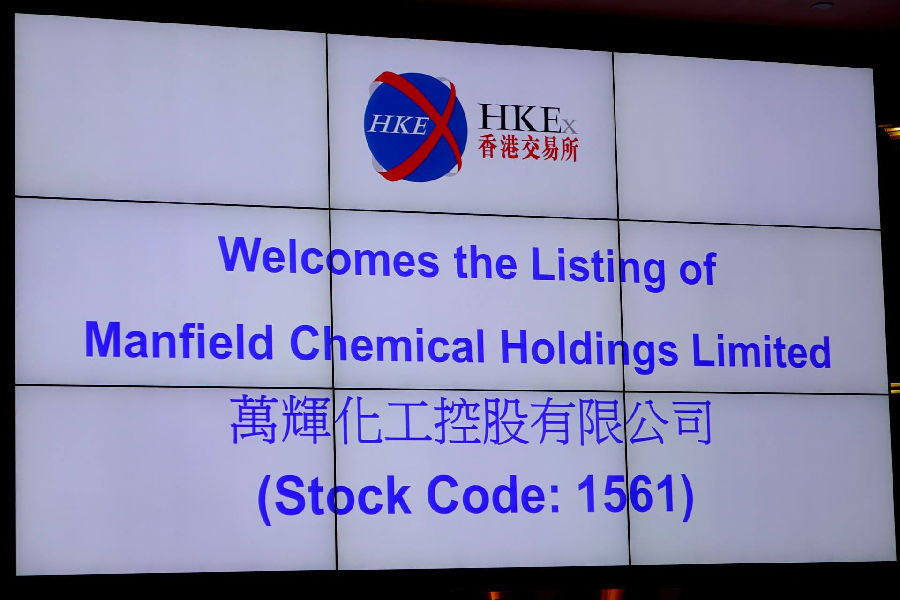 Manfield Chemical Holding Limited was listed on Hong Kong Exchanges and Clearing Limited (HKEX) on December 1, 2015 with stock code 1561.