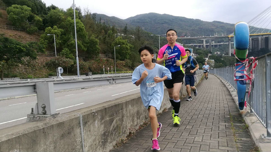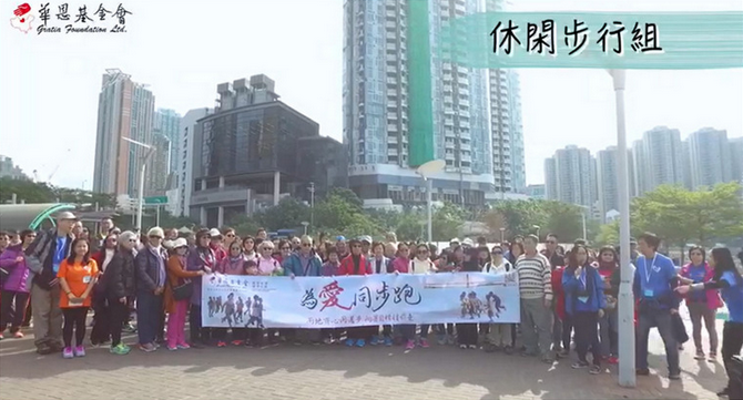 為愛同步跑活動分為三個組別:十公里跑步組、四公里跑步組及休閑步行組。早上八點多,跑步組開始報到并領取紀念T恤,在荃灣廣場做跑前熱身并聽取活動負責人介紹華恩簡介及跑步注意事項,于9點開始為愛同跑!