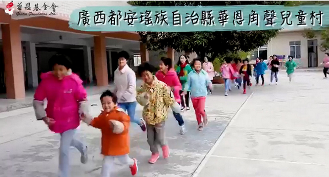 與此同時,福建三明市角聲華恩兒童村、四川綿陽市角聲華恩兒童村、廣西都安瑤族自治區華恩角聲兒童村的小朋友們也積極響應這份愛,為著目標奮力向前跑,現場大朋友牽著小朋友跑,還有的繞籃球場跑了十來圈。