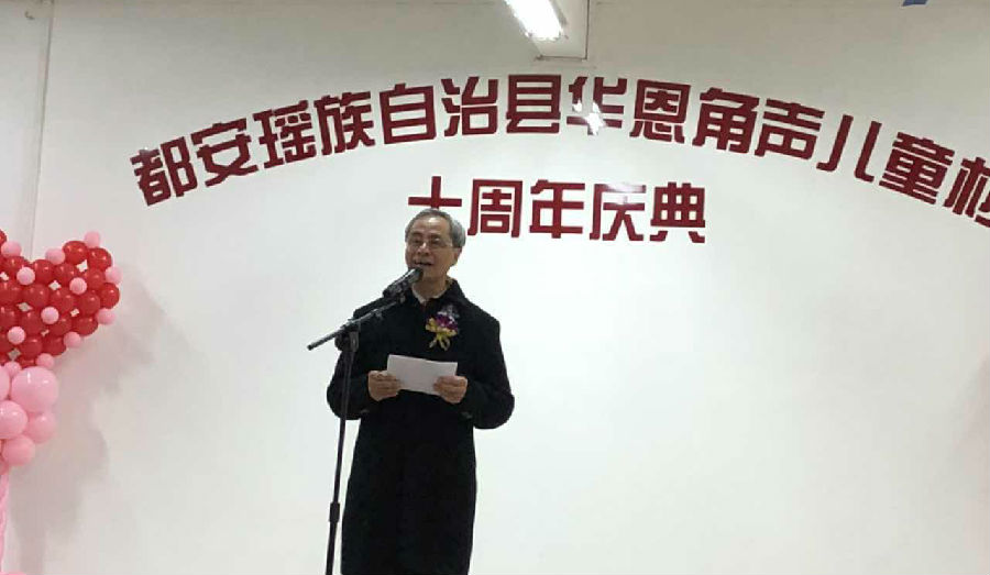 原先生表述了此次慶典用「以愛還愛」為主題的用意,并對香港華恩基金會和美國角聲基金會成員的肯定,對他們評價為“都是一群感受到被愛、蒙恩的人”。華恩基金會借著兒童村的事工,向一群有需要的特困兒童,傳遞出愛和關懷,并且期盼他們成長后,用同樣的愛心反饋社會,關顧友鄰。同時列舉了兒童村離院孩子用「以愛還愛」的實際行動回饋社會的案例,如第一位大學畢業生積極參與回饋家鄉活動、利用暑假時間服務山區孩子及一些孤寡老人;如已工作的三名離院孩子帶領其8位同事一起到兒童村做維修工作,到山區懷道小學蓋建一些遮雨棚等等。
