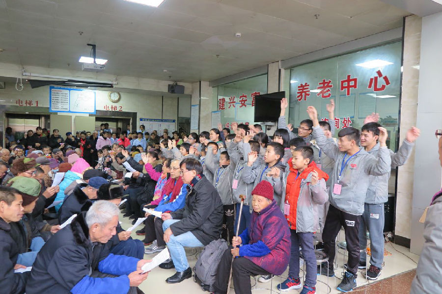 當天下午,兒童村孩子與愛心捐助者們還準備了禮包,探訪都安敬老院的老人家們,學習「以愛還愛」,一起服侍有需要的人,以具體行動回饋家鄉,回饋社會、回饋國家。