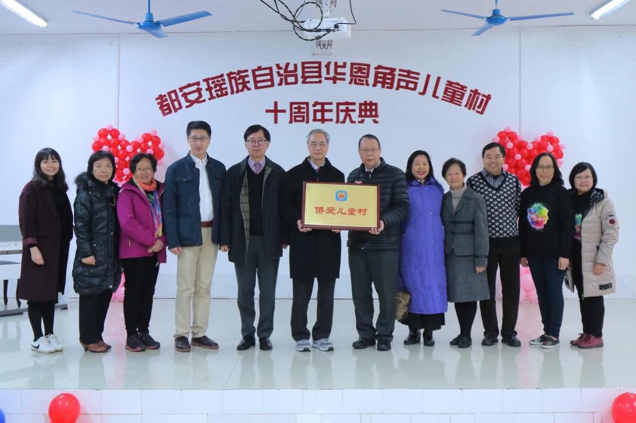 2018年1月7日,廣西省都安瑤族自治縣華恩角聲兒童村舉辦了「以愛還愛」為主題的十周年紀念慶典,現場還有來自香港及深圳近40位愛心捐助者、20多位已長大離開了兒童村的孩子以及10多位華恩關愛的大學生,從不同地區來到兒童村,一起參與這個慶典。