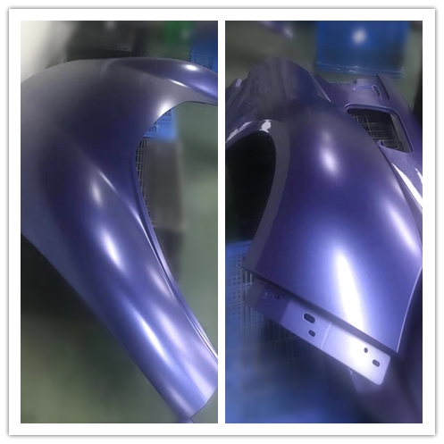 未經(jīng)處理的碳纖維表面光滑、惰性大、表面能低, 缺乏有化學(xué)活性的官能團(tuán), 表面呈現(xiàn)化學(xué)惰性, 與樹脂基體浸潤(rùn)性差, 這使得復(fù)合材料界面黏合性能差。而要在碳纖維車身板上獲得A級(jí)表面所面臨的挑戰(zhàn),主要集中在底涂附著力、素材瑕疵的封閉性與色漆及罩光清漆的流平性上。萬輝碳纖維涂料解決方案中專用底涂可以起到封閉底材缺陷, 提高整體涂層的豐滿度、隔離性和耐久性的作用,減少打磨工序;而萬輝色漆及罩光清漆已經(jīng)達(dá)到了國(guó)際領(lǐng)先品牌的流平性能,最終呈現(xiàn)給消費(fèi)者眼前的是前途K50璀璨平滑的完美車身效果。