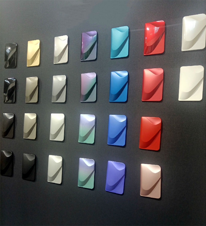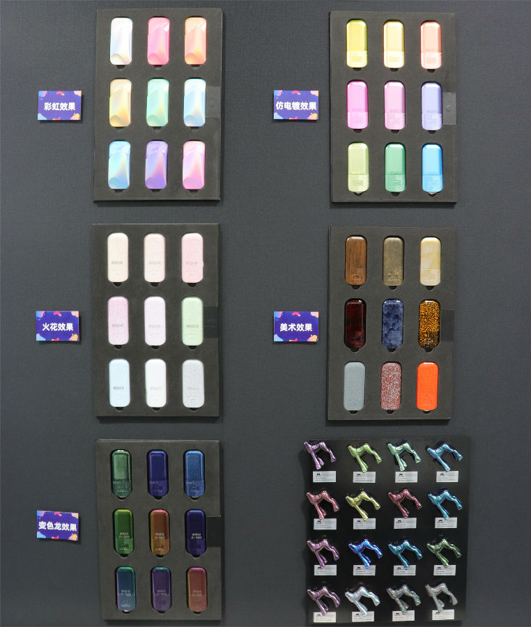 - 擁有啞黑、高光、水轉印、雙固化UV、手感漆、電鍍銀和烤漆等系列油性、水性環保產品