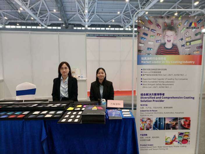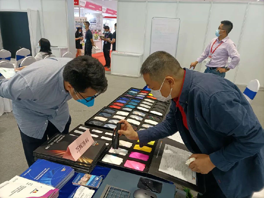 會議期間,我們為客戶展示了萬輝主力產品系列:特殊效果涂料(感溫變色涂料、光變涂料、仿電鍍涂料、幻彩涂料)、抗指紋涂料及水性涂料等等,同時也收獲了許多客戶對萬輝公司及產品的認可及進一步的合作意向。