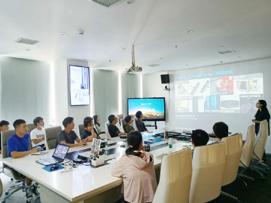 2023年10月25日,萬輝團隊拜訪了深圳齊奧通信公司,雙方就消費電子的環(huán)保涂裝與色彩應(yīng)用進行了深入的交流探討。▲技術(shù)宣講&萬輝產(chǎn)品展示