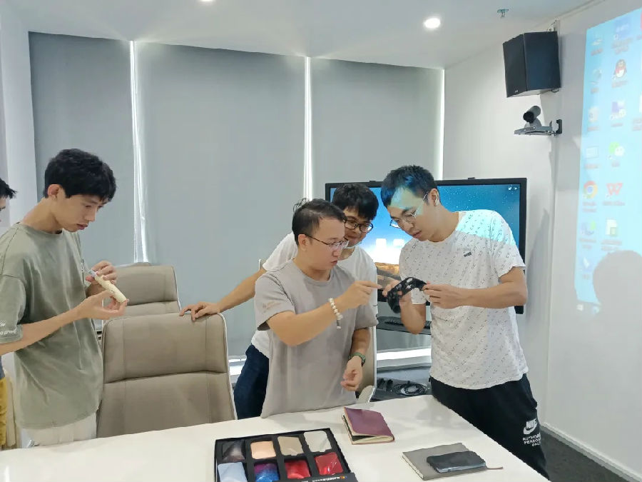 展廳參觀環(huán)節(jié),齊奧團隊為我們詳細介紹了各類產(chǎn)品的顏色設(shè)計理念與效果體現(xiàn),讓我們更進一步地了解和獲取到客戶產(chǎn)品的實際應(yīng)用和需求,以便快速精準地推薦合適的涂料色彩及特殊效果應(yīng)用。同時,我們也為客戶推薦了萬輝UV Monocoat應(yīng)用于藍牙耳機、插座和音箱等產(chǎn)品,用一涂替代原有的兩涂工藝(底漆+面漆),實現(xiàn)真正的降本減耗,且能保持很好的金屬感和耐磨性能。
